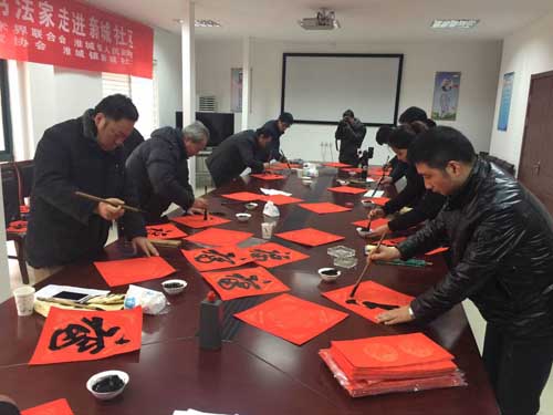 2016年1月31日上午,区文化馆、区书法家协会的书法家们走进新城社区义务写春联,书法家们挥毫泼墨、笔酣墨饱,为新城社区的居民们提前送去了新春的祝福!