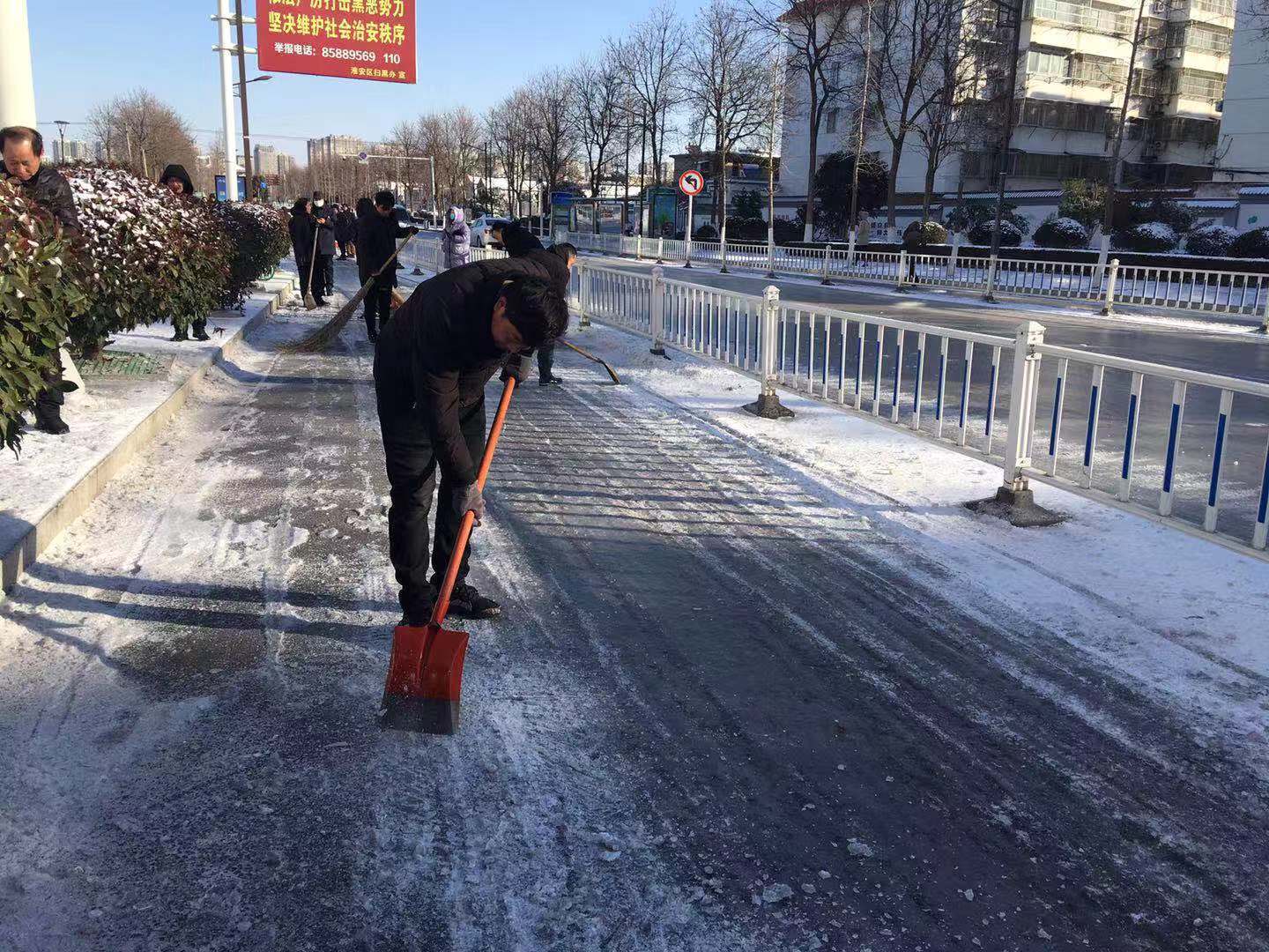 面对冷冽的寒风、厚厚的积雪、坚硬的冰层,大家充分发挥团队协作优势,发扬“不怕苦、不怕累”的精神,拿着铁锹、雪铲、扫帚等工具,分工有序,配合默契,干劲十足。铲累了换换手,手冷了暖一暖。尽管雪水浸入鞋内、打湿衣角,但丝毫没有影响大家保障道路畅通的服务热情。经过一上午奋战,及时将韩信北路的积雪清除完毕,道路恢复了整洁、畅通,为市民出行提供了便利。