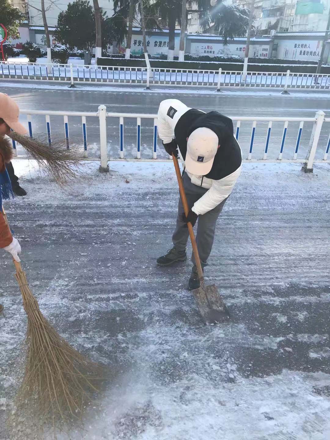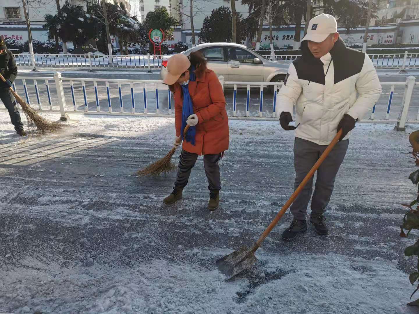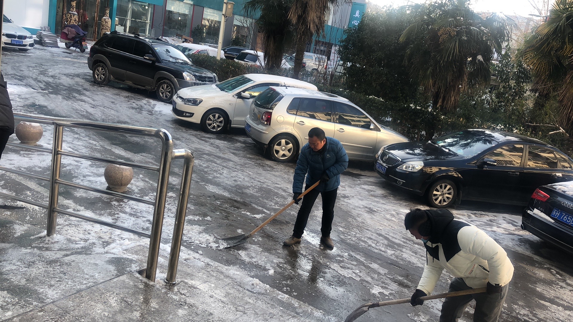 室外寒冷刺骨,淮安区文化馆全体人员却用火热的工作热情温暖了居民的心,以身作则,为市民清理出安全的通行道路,赢得群众纷纷点赞。