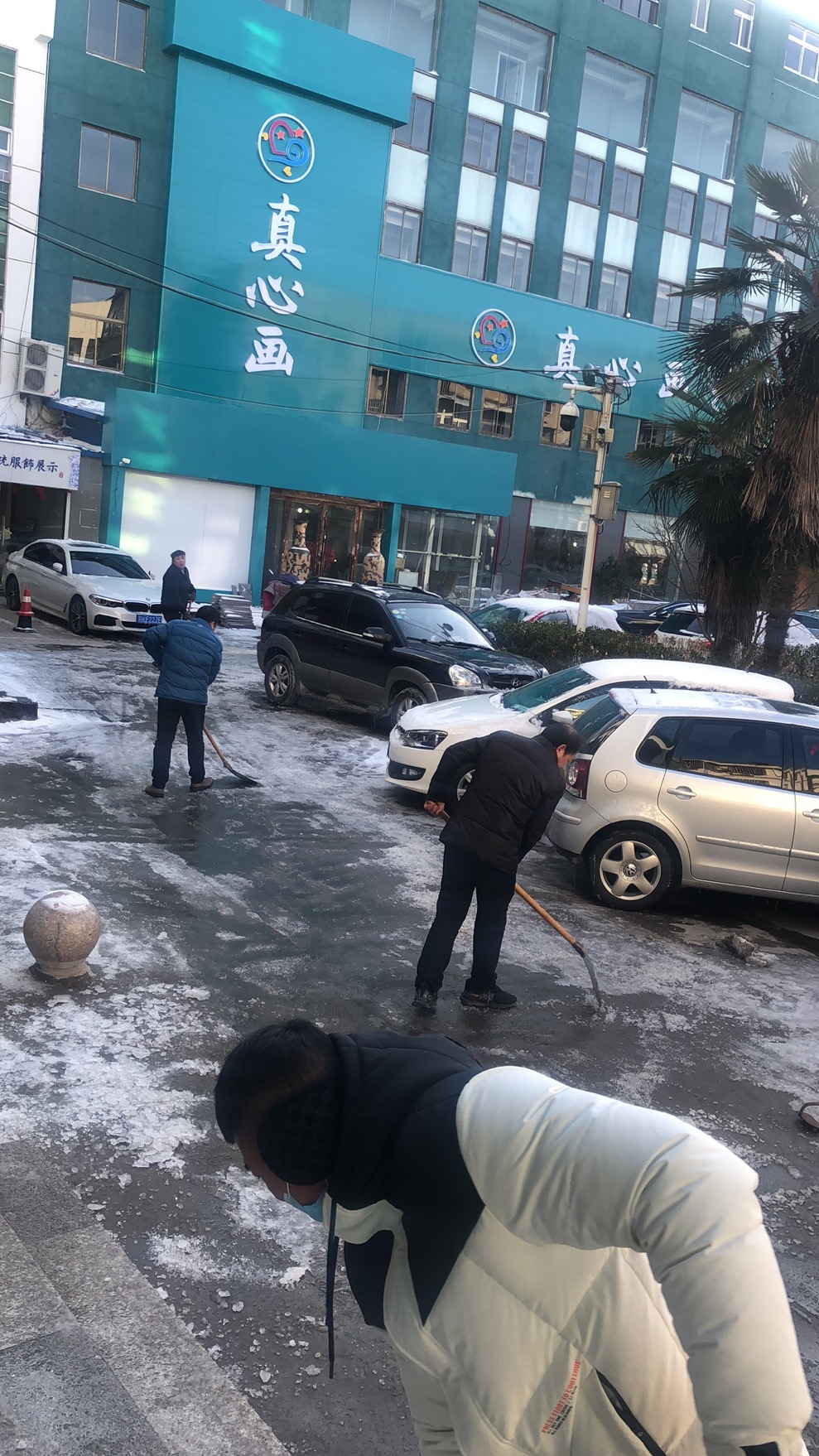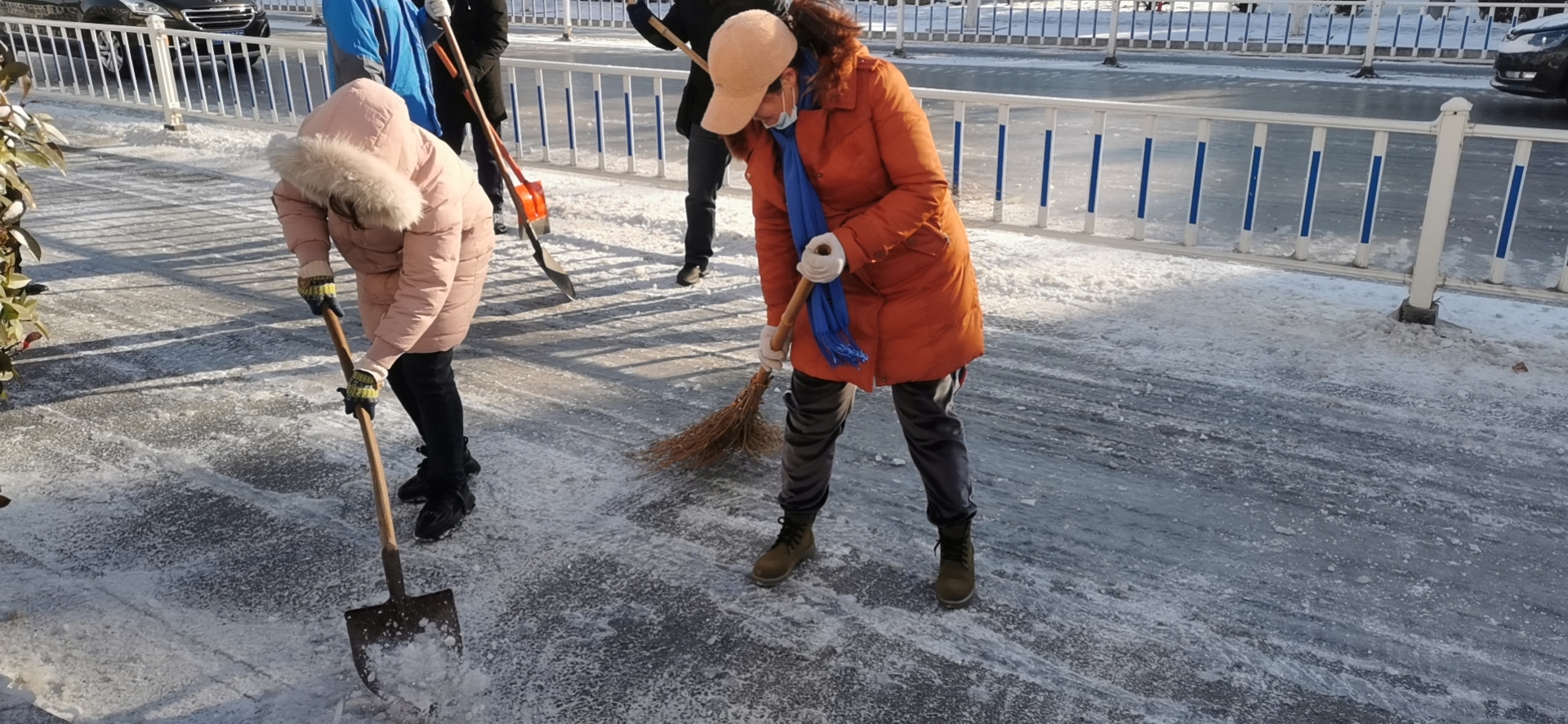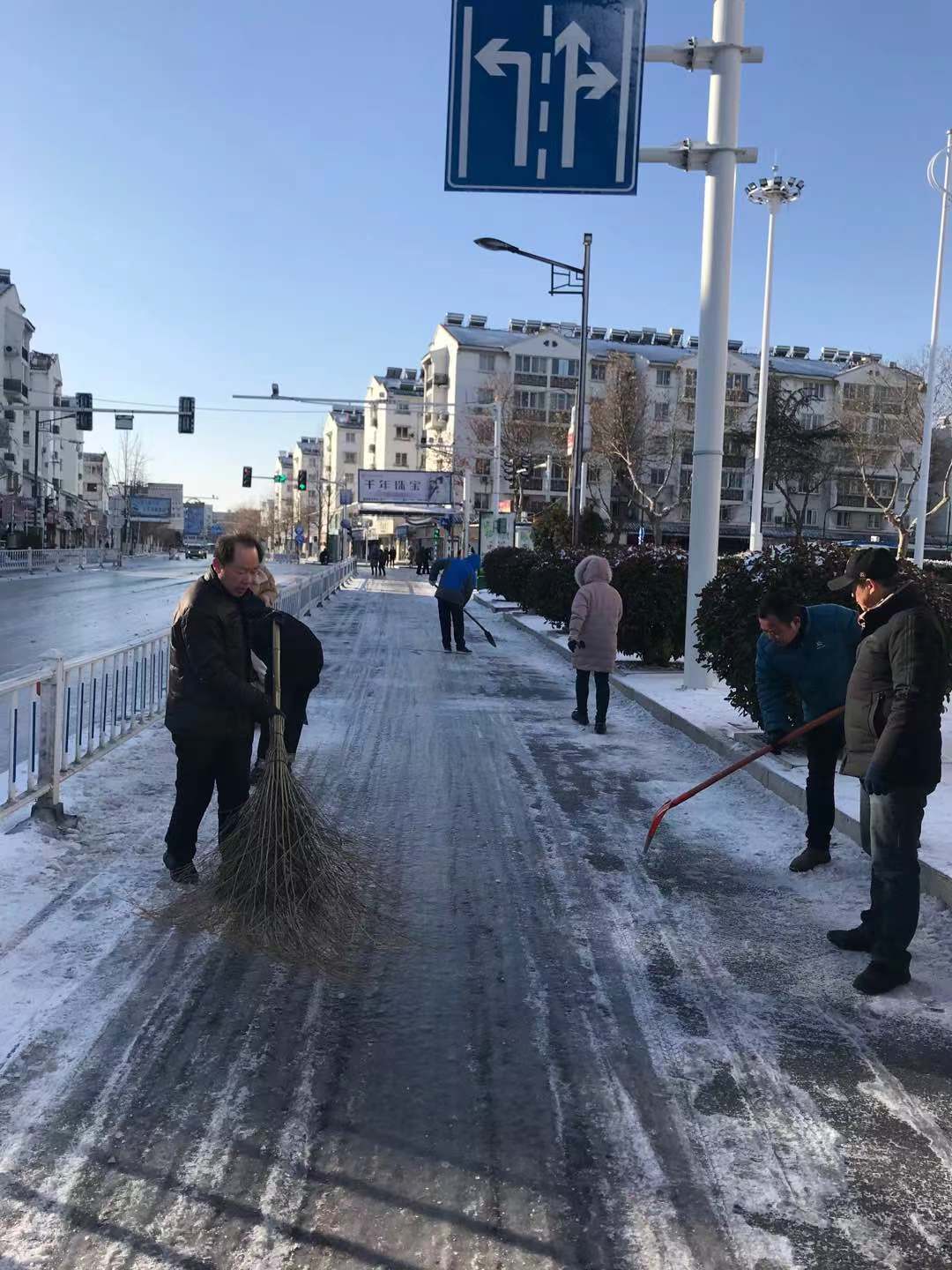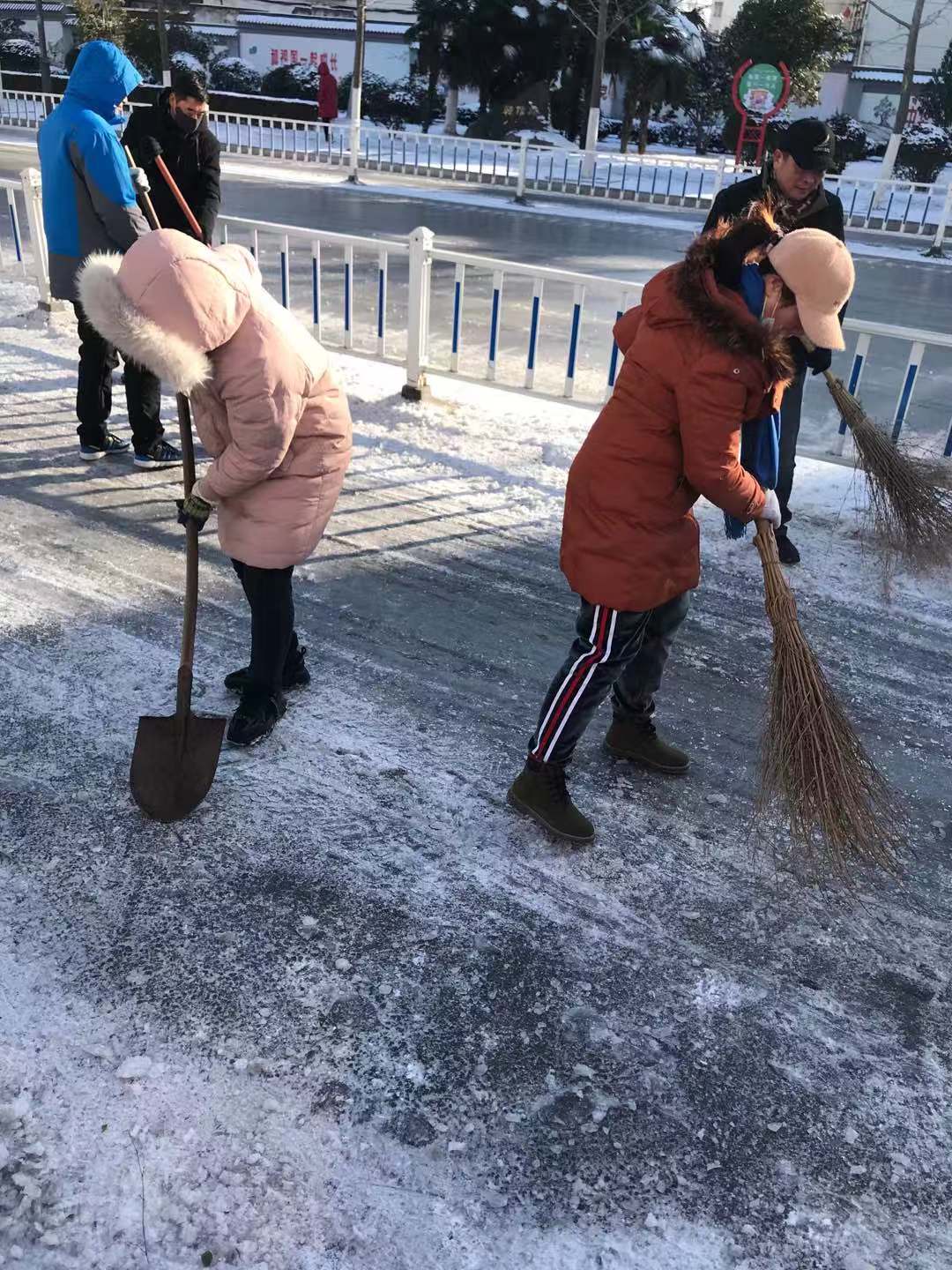 室外寒冷刺骨,淮安区文化馆全体人员却用火热的工作热情温暖了居民的心,以身作则,为市民清理出安全的通行道路,赢得群众纷纷点赞。
