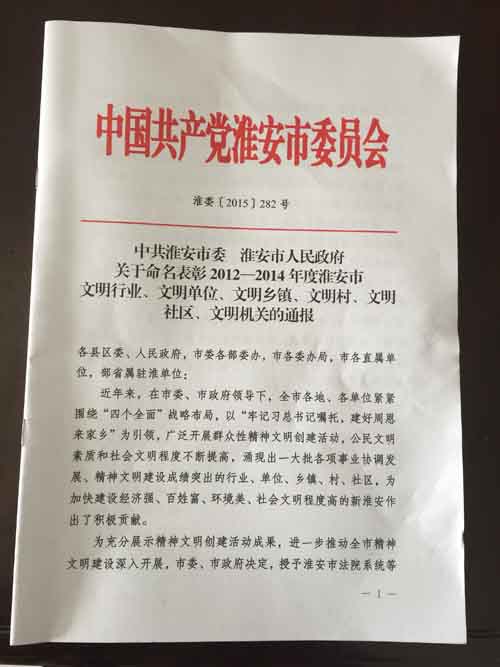 淮安区文化馆被命名为 2012——2014年度淮安市文明单位